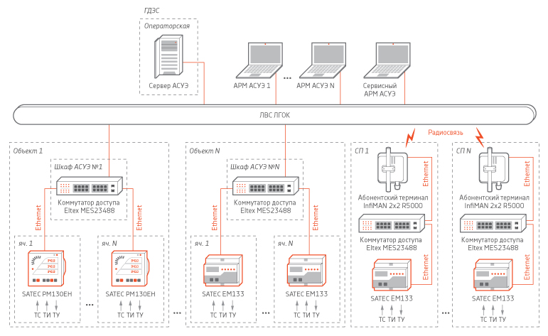АСУЭ Ломоносовского ГОК представляет собой двухуровневую информационную систему с распределенной функцией сбора информации, имеющую нижний и верхний уровни иерархии.